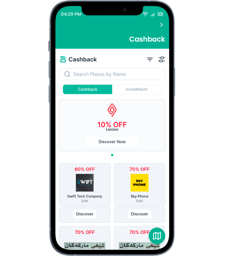 احصل على كاش باك اثناء ممارستك الأنشطة اليومية مثل تناول الطعام خارجاً والتسوق والسفر. يمكنك العثور على القائمة الكاملة للشركات التي تقدم كاش باك في تطبيق FIB